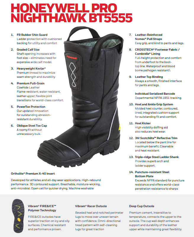 • Introducing PRO Series NightHawk™ 5555 boots from Honeywell: Rugged protection and durability. Remarkable comfort and agility.