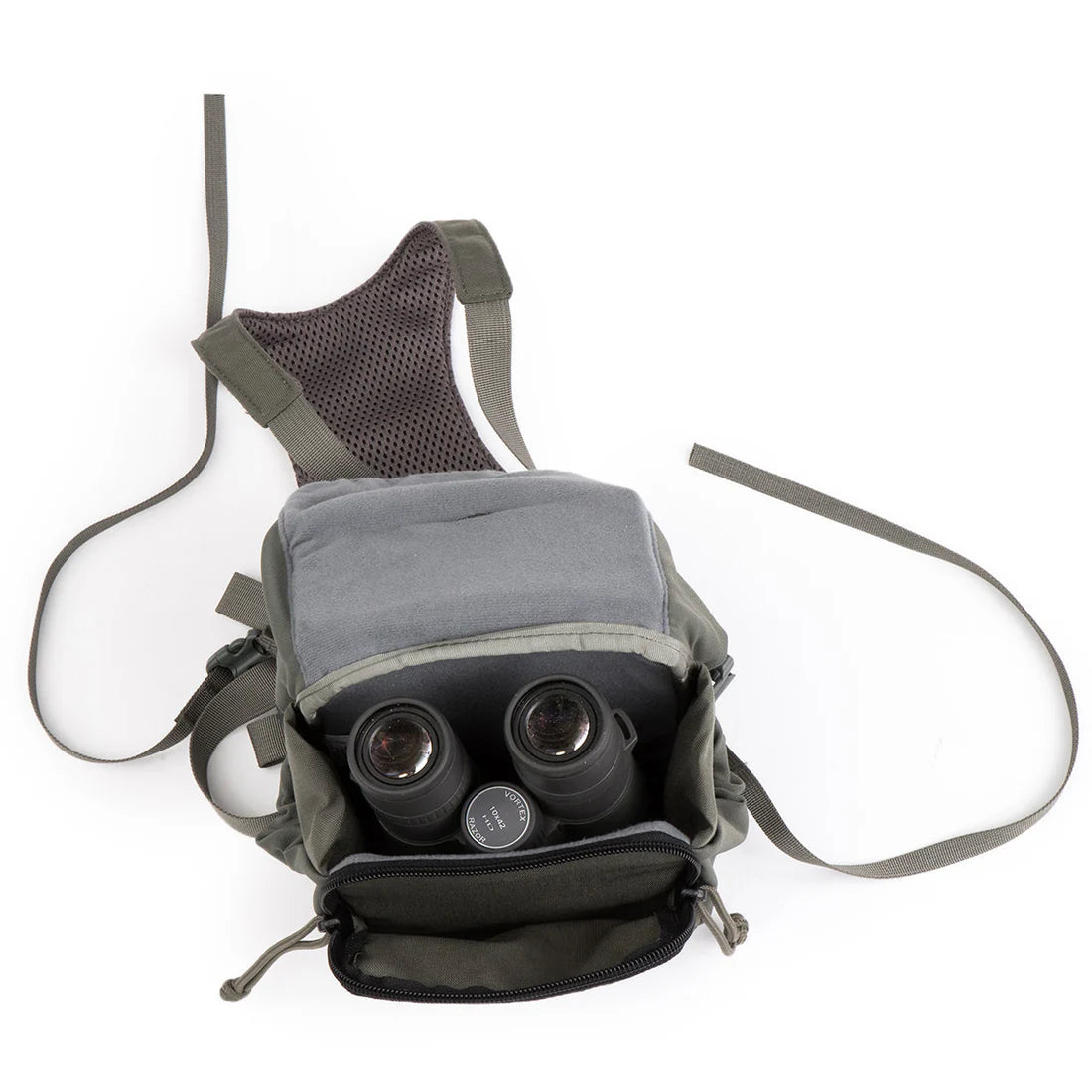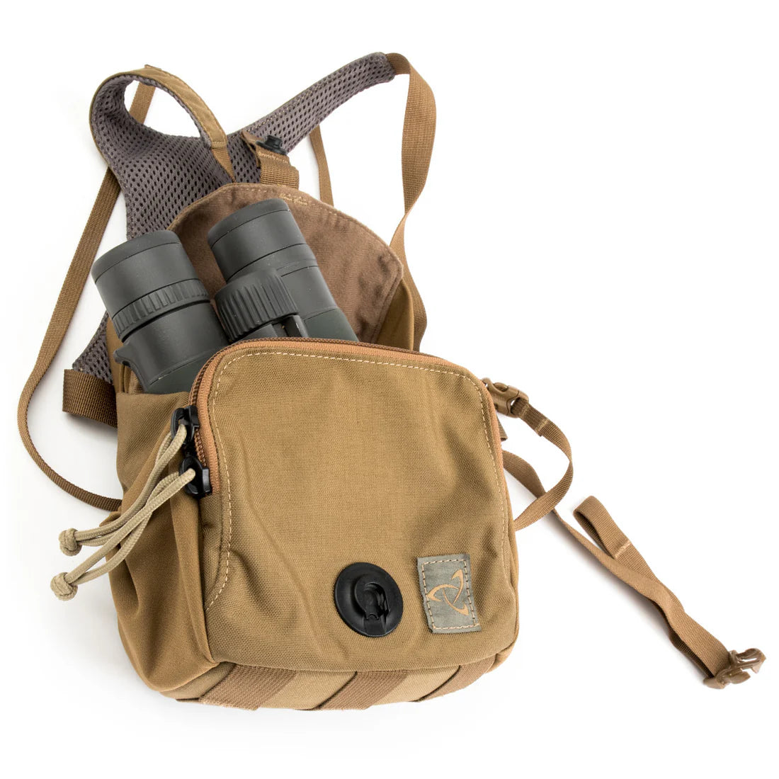 When you're focused on the hunt, key tools like binoculars shouldn't require a moment's thought to access or stash. Our QUICK DRAW BINO HARNESS, available in two sizes, features a comfortable, close-fitting design that works in harmony with your pack. A 3-dimensional top flap, with a magnetic buckle closure, protects your Binos from the elements and closes securely when you're belly crawling. A detachable security strap provides insurance you don't drop your binos on the terra firma.