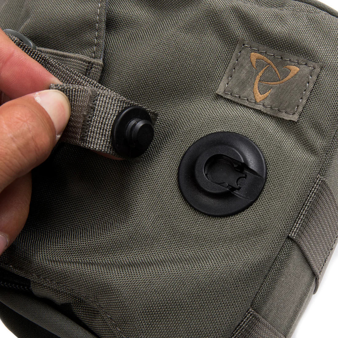 • The magnetic buckle closure automatically engages to secure binos.