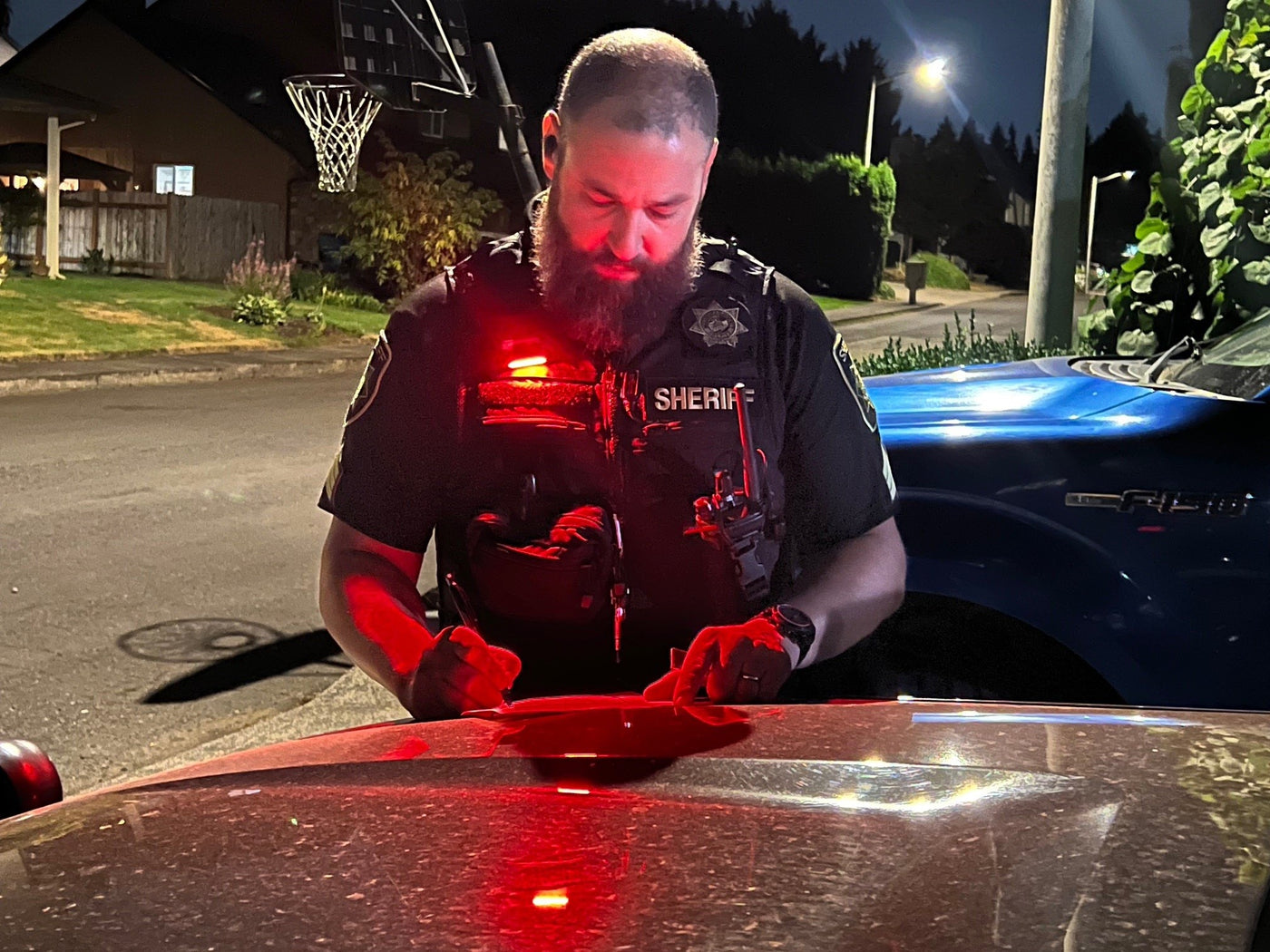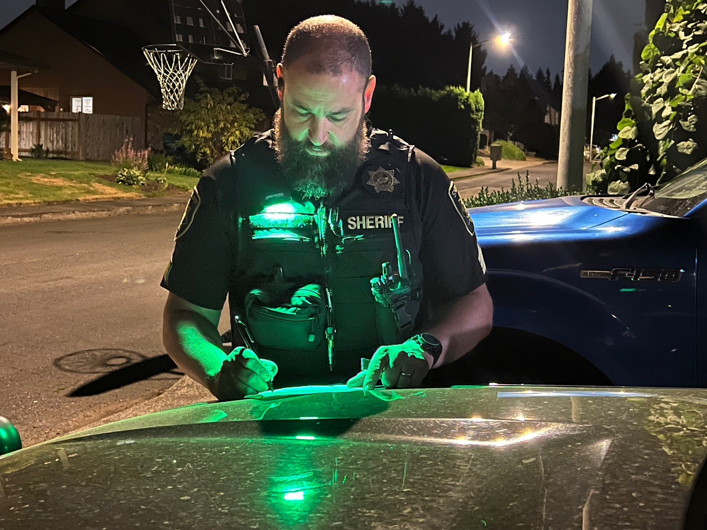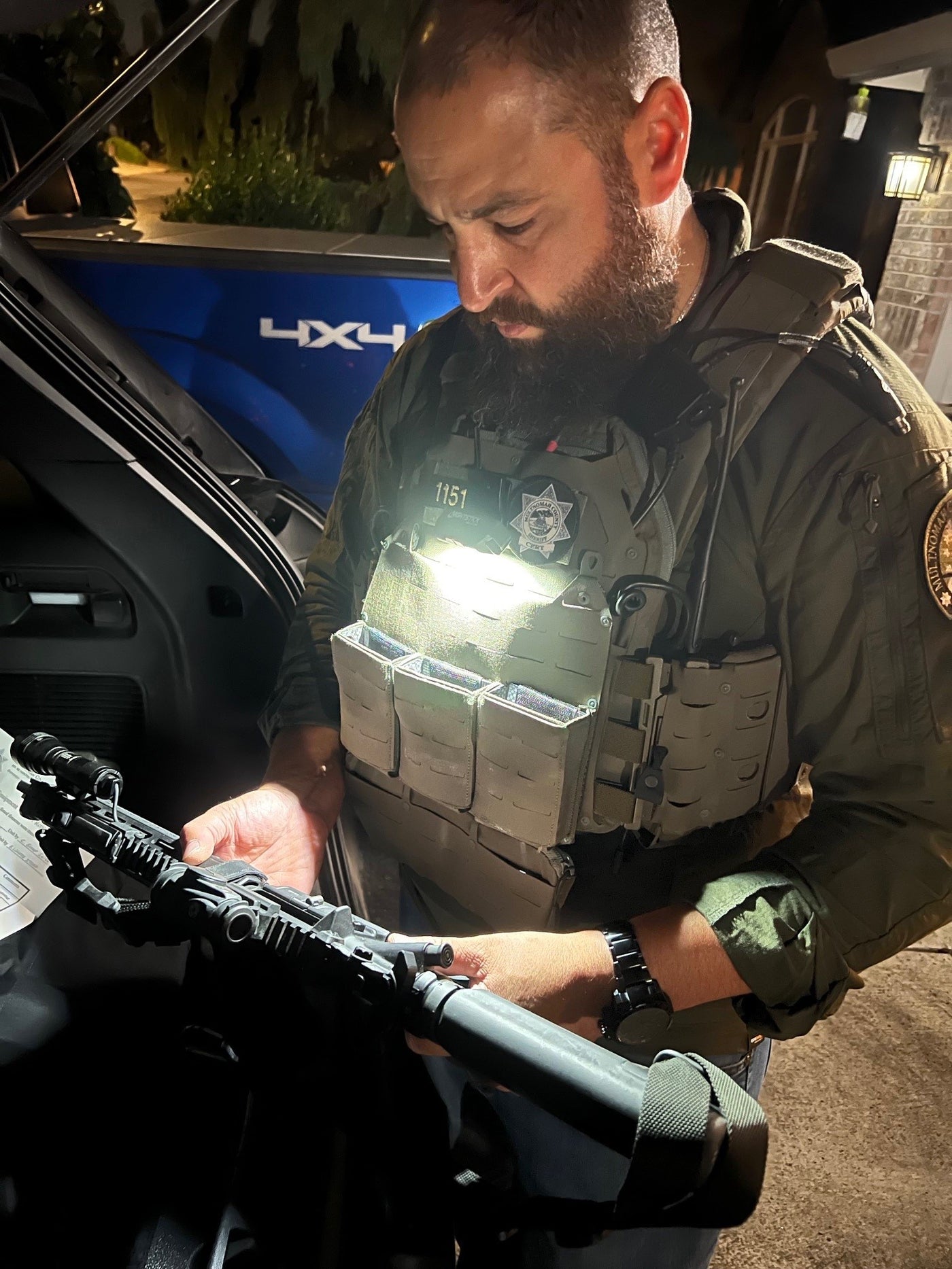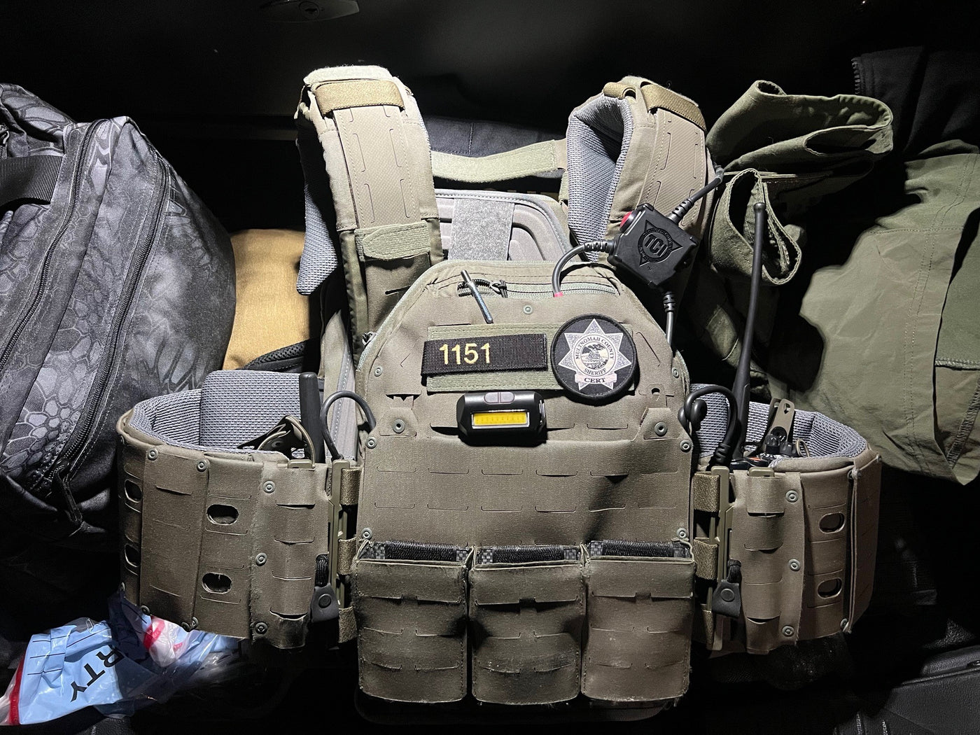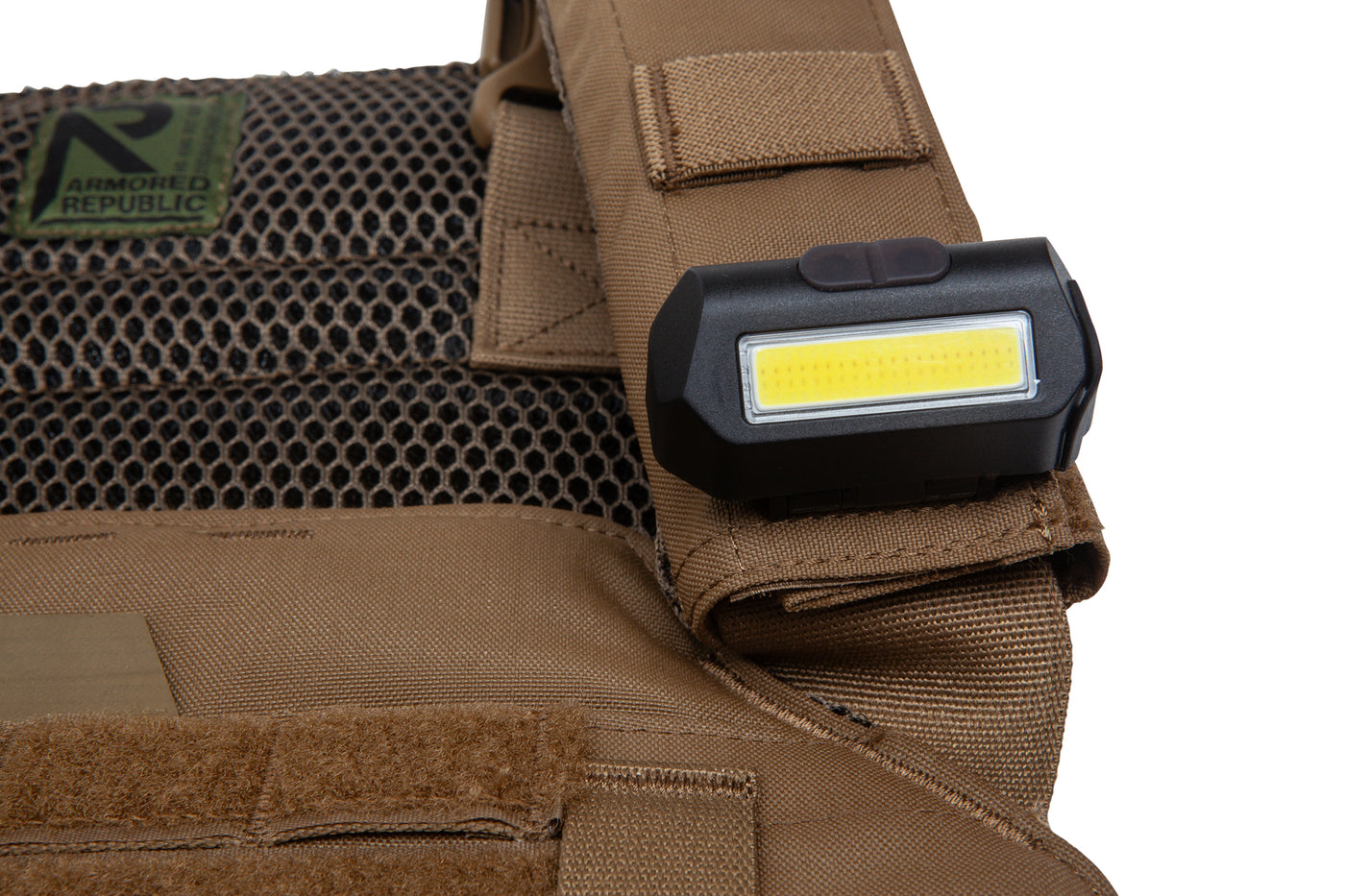 The USB-4510M Multi-Flood USB Gear Light is a lightweight area floodlight with selectable white, green, or red LEDs. It clips firmly to mic loops, MOLLE, or PALS webbing on tactical and industrial safety vests, backpacks, and gear bags. This makes it ideal for law enforcement and jobsite crews.